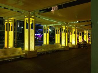 Keywords: rue d ' anglais nice france côte d ' azur night lighting waiting benches waiting room railway station bus station