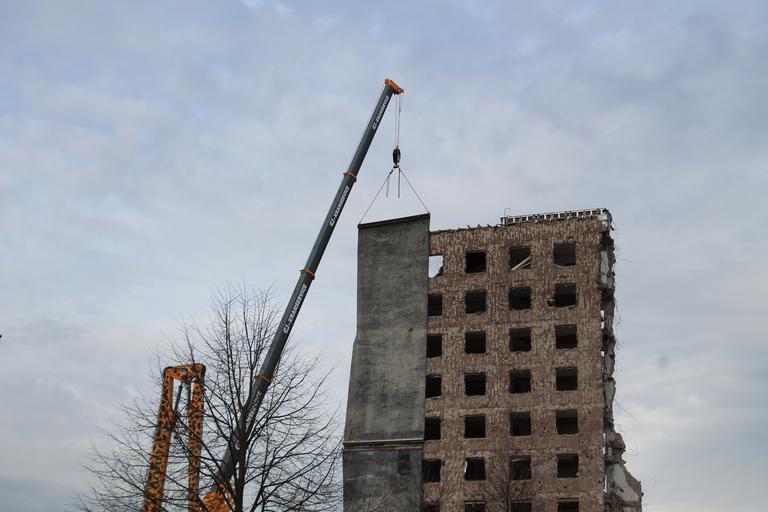 Keywords: ruin bauruine building destroyed broken site building rubble home debris crash old decay destruction work house demolition architecture demolition lapsed skyscraper frankfurt winter kahl tree sky