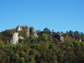 Keywords: ruin hohengerhausen rusenschloss ruin height burg gerhausen blaubeuren swabian alb nature forest destination castle baden württemberg rock viewpoint blue valley idyllic large cave neanderthal cave neanderthals rocky landscape