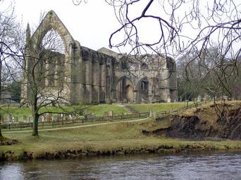 Keywords: ruin monastery church gothic abbey destroyed nave remains of a wall middle ages building england yorkshire historically gloomy