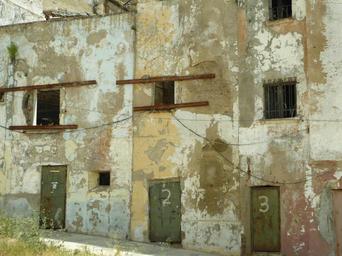 Keywords: ruin state uninhabitable uninhabited restore facades houses aligned abandonment old vacuum doors strengthen deterioration ruinous
