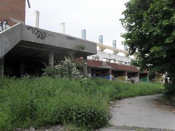 Keywords: Ruina zimniho stadionu (8 6 2013) 4.JPG Ruiny Teplického zimního stadiónu poblíž fotbalového stadiónu own 8 6 2013 Safranek-interia eu Cc-zero Teplický zimní stadión