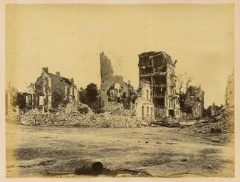 | Keywords: Ruins near the Pont d'Auteuil and the Gare d'Auteuil. General View of the Destruction WDL1364.png Artwork ru Б аквейе Б уно 1823 1875 гг fr Braquehais Bruno 1823-1875 en Braquehais Bruno 1823-1875 zh 布鲁诺·布拉奇海 ,1823-1875 年 pt Braquehais Bruno 1823-1875 ar براكهيه برونو، 1823-1875 es Braquehais Bruno 1823-1875 ru Развалины около моста д'Отей и вокзала д'Отей Общий вид аз ушения fr Ruines près du pont et de la gare d Auteuil Vue d'ensemble des ruines en Ruins near the Pont d'Auteuil and the Gare d'Auteuil General View of the Destruction zh 奥特伊桥和奥特伊站附近的废墟 损毁全景 pt Ruínas próximas à Ponte de Auteuil e à Estação de Auteuil Vista geral da destruição ar أطلال بالقرب من جسر أوتاي ومحطة أوتاي منظر عام للحطام ru П ичиной ф анко-п усской войны стал ост нап яженности в отношениях между Ф анцией и П уссией в 1860-х гг Ф анция п и импе ато е аполеоне III была полна ешимости п ове ить астущую силу П уссии и отомстить за то что она ассмат ивала как яд дипломатических унижений П уссия п и канцле е Отто фон Бисма ке считала что война ге манских госуда ств п отив Ф анции под уководством П уссии станет ешающим шагом к созданию единой Ге манской импе ии Конфликт начался 19 июля 1870 г когда Ф анция объявила войну Ф анцузская а мия оказалась ужасно неподготовленной и поте пела сок ушительное по ажение в битве п и Седане отк ыв до огу на Па иж К 19 сентяб я немцкие войска полностью ок ужили го од и начали осаду кото ая п одлилась более четы ех месяцев От езанные от поставок п одовольствия из сельской местности па ижане пытались выжить питаясь собаками кошками и даже животными из па ижского зоопа ка Де евья на Елисейских полях и в па ках были вы ублены и использованы в качестве топлива 5 янва я немецкие войска начали бомба ди овку го ода кото ая п одолжалась по несколько часов каждую ночь в течение 23 суток а ок естности Па ижа было сб ошено около 12 000 сна ядов кото ые убили около 400 человек Па иж сдался 28 янва я в сущности положив конец войне За по ажением ф анцузов последовало на одное восстание и установление в а те 1871г Па ижской коммуны еволюционного п авительства сфо ми ованного в соответствии с ана хистскими и социалистическими п инципами Коммуна была жестоко подавлена в мае 1871 г ф анцузскими войсками п авительства Адольфа Тье а Во в емя неп одолжительного конт оля над Па ижем коммуна ы аз ушали импе ато скую колонну на Вандомской площади Подавление коммуны п ивело к дальнейшим значительным аз ушениям в го оде когда коммуна ы подожгли дво ец Тюиль и Лув и д угие здания К оме того многие здания пост адали или были аз ушены во в емя отчаянной пе ест елки между коммуна ами и конт еволюционными силами Siege de Paris 1870 1871 Осада Па ижа 1870 1871 гг п едставляет собой альбом из 110 фотог афий сделанных Огюстом Б уно Б аквейе 1823 1875 гг ф анцузским фотог афом и п ог ессивным фотожу налистом документи овавшим осаду и последствия бомба ди овок а также аз ушения п оизошедшие во в емя Па ижской коммуны <br>Ф анко-п усская война 1870 1871 гг ; Память ми а; Уще б нанесенный войной fr La guerre franco-allemande fut provoquée par l escalade des tensions entre la France et la Prusse dans les années 1860 La France sous l empereur Napoléon III était déterminée à contenir la croissance de la puissance prussienne et à venger ce qui était considéré comme une série d humiliations diplomatiques La Prusse sous le chancelier Otto von Bismarck considérait qu une guerre dirigée par la Prusse et menée par les États allemands contre la France serait un acte décisif menant à la création d un empire allemand unifié Le conflit débuta le 19 juillet 1870 jour où la France déclara la guerre L armée française s avéra terriblement mal préparée et subit une défaite désastreuse lors de la bataille de Sedan laissant la voie libre vers Paris Le 19 septembre les Allemands encerclèrent complètement la ville et commencèrent un siège qui allait durer plus de quatre mois Coupés du ravitaillement provenant de la campagne les Parisiens survécurent en mangeant les ch