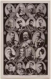 | Keywords: Ruling-monarchs.jpg Postcard of ruling monarchs taken in 1908 between February accession of King Manuel II of Portugal and November death of Guangxu Emperor Monarchs shown DEFAULTSORT 19080200 Chulalongkorn of Siam Thailand George I of Greece Peter I of Serbia Carol I of Romania Franz Joseph of Austria-Hungary Ferdinand I of Bulgaria Abdul Hamid II of the Ottoman Empire Victor Emmanuel III of Italy Nicholas II of Russia Edward VII of the United Kingdom William II of Germany Gustav V of Sweden Haakon VII of Norway Frederick VIII of Denmark Wilhelmina of the Netherlands Guangxu Emperor of the Chinese Qing Dynasty Emperor Meiji of Japan Manuel II of Portugal Alfonso XIII of Spain PD-old Abdül Hamid II Photographical portraits of Alfonso XIII of Spain 1906-1931 Carol I of Romania George I of Greece 1908 Edward VII in photographs Ferdinand I of Bulgaria in art Franz Joseph I of Austria on postcards Frederik VIII of Denmark Guangxu Emperor Gustav V of Sweden Haakon VII of Norway Manuel II of Portugal Meiji Emperor Nicholas II of Russia in photographs Peter I of Serbia Photos of Rama V Victor Emmanuel III of Italy Wilhelm II of Germany Wilhelmina of the Netherlands 1908 postcards Postcards of ruling monarchs Moustaches |