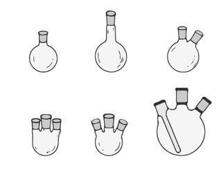 | Keywords: Rundkolben.svg en Several round-bottomed flasks Above round-bottomed flask long-neck round-bottomed flask two-necked round-bottomed flask; below three-necked round-bottomed flask radial three-necked round-bottomed flask two-necked round-bottomed flask with thermometer well adapted from Bates/Schaefer Research Techniques in Organic Chemistry Ayacop 2008-07-31 Laboratory flasks |