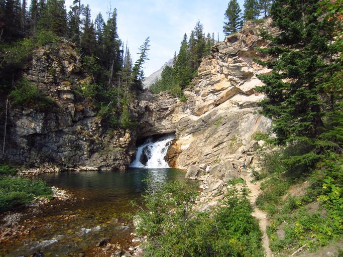 View Original:Running_Eagle_Falls_-_[Two_Medicine_Area]_-_3_(Early_in_the_season_when_there_is_more_water_flowing,_it_cascades_from_both_over_the_top_of_the_cliff_and_also_from_the_middle_of_the_rock_face_visible_in_this_photo.).jpg (4000x3000)