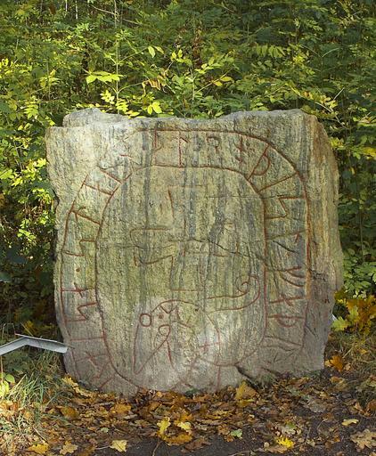| Keywords: sweden haninge västerhaninge ribby blåkullavägen runsten geotagged runestone runes runor sverige outdoor I Ribby (Västerhaninge) står det en runsten från 1000-telet e.K och runraden lyder, "suin . lit . raisa . stain . at . roþisl . faþr . sin", runristaren är troligen Amunde. Översättning enligt skylten är, "Sven lät resa stenen efter Rodisl, sin fader", på den kan man även läsa följande: "Stenen står troligen på sin ursprungliga plats. Sven är det vanligaste namnet i vikingatida runskrifter. Rodisl är däremot mycket ovanligt, med något undantag är det bara känt från Gotland". Man bör även notera att stenen troligen stått här ganska länge och att organiskt material och grus under årens lopp gjort att runradens undre del snart är täckt, egentligen borde den grävas fram så att runraden inte vittrar sönder på den nedre delen vilket har vart ett ganska vanligt öde för många runstenar. (RAÄ Västerhaninge 205:1) I Ribby (Västerhaninge) står det en runsten från 1000-telet e.K och runraden lyder, "suin . lit . raisa . stain . at . roþisl . faþr . sin", runristaren är troligen Amunde. Översättning enligt skylten är, "Sven lät resa stenen efter Rodisl, sin fader", på den kan man även läsa följande: "Stenen står troligen på sin ursprungliga plats. Sven är det vanligaste namnet i vikingatida runskrifter. Rodisl är däremot mycket ovanligt, med något undantag är det bara känt från Gotland". Man bör även notera att stenen troligen stått här ganska länge och att organiskt material och grus under årens lopp gjort att runradens undre del snart är täckt, egentligen borde den grävas fram så att runraden inte vittrar sönder på den nedre delen vilket har vart ett ganska vanligt öde för många runstenar. (RAÄ Västerhaninge 205:1) |