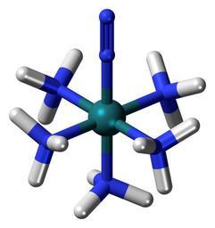 | Keywords: Rupentammine N2 3D stick.png Stick model of the rupentammine N2 complex cation with a positive charge of 2 Colour code F0F0F0 Hydrogen H white<br> 3C50FA Nitrogen N blue<br> 018C90 Ruthenium Ru teal<br> 2011-06-15 own DS Visualizer Jynto talk Ball-and-stick version Space-filling version cc-zero Ruthenium complexes Ammine complexes Dinitrogen complexes Complex cations Images by Jynto | ||||