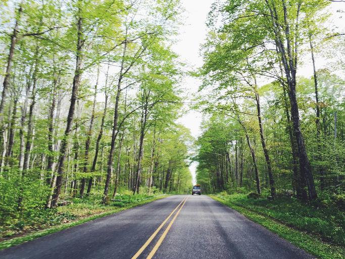Keywords: rural road highway trees forest woods nature green truck