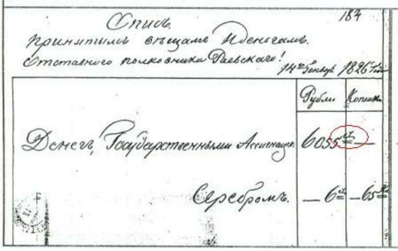 | Keywords: Rursign1826.jpg BadJPEG en The list of resigned colonel Raevsky's personal belongings ru Опись п инятым вещам и деньгам отставного полковника Раевского Госуда ственный а хив ф 48 оп 1 дд 293-295 Следственная комиссия и Ве ховный уголовный суд по делу декаб истов 1826-01-14 PD-old Russian Ruble symbol 1826 in Russia Russian language |