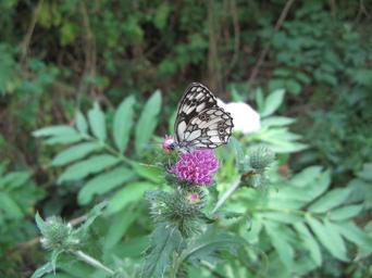 Keywords: Rusenski Lom butterfly.jpg Melanargia Galathea Own 2007-06-23 Ine van Zeeland Melanargia galathea on flowers
