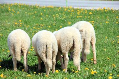 Keywords: rush green meadow pasture animal sheep friends togetherness