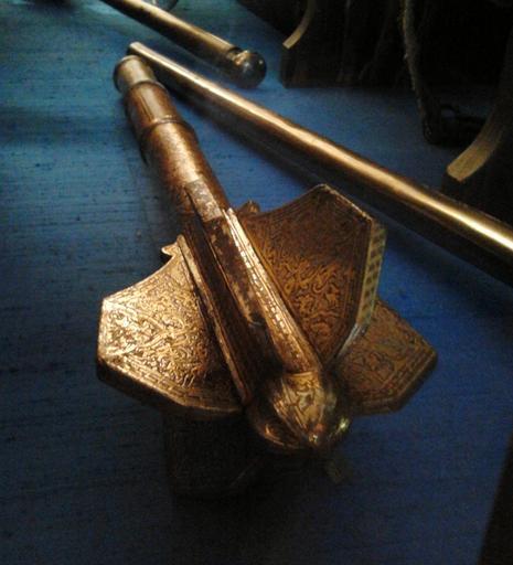 | Keywords: Russia Flanged mace 02.jpg Russia ca 1560 gilt iron Institution Kunsthistorisches Museum accession number C 68 object history Pskov < 1582-02-01 gift Ferdinand II Innsbruck Stephen Báthory Kraków credit line The mace was one of the war booties captured by the Stephen Báthory King of Poland during the Siege of Pskov The mace of Muscovy millitary leader with 6 or 7 metal flanges called feathers one of several Russian maces donated by the King of Poland C 73 A 2323 Zdzisław Żygulski 2008 Batory pod Pskowem i zbroja królewska Kontekst historyczny in Urbs celeberrima księga pamiątkowa na 750-lecie lokacji Krakowa p 396 401-402 own See below cc-zero DEFAULTSORT 1560 circa; Flanged mace Flanged mace Kunsthistorisches Museum |