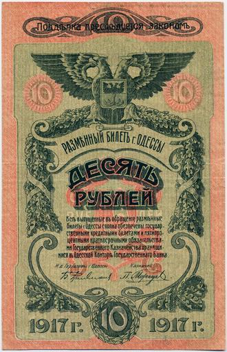 | Keywords: Russia-Odessa-1917-Banknote-10-Obverse.png Banknote of Odessa 1917 10 rubles obverse Разменный билет Одессы 1917 год 10 ублей лицевая сто она Banknote is courtesy of collector who wants to remain anonymous Thank you I scanned this image Банкнота п едоставлена коллекционе ом пожелавшим остаться анонимным Спасибо Отскани овано мной 1917 PD-RU-exempt banknotes PD-UA-exempt banknotes PD-old-70 Banknotes of Odessa 1917 1919 Banknotes with a face value of 10 | ||||