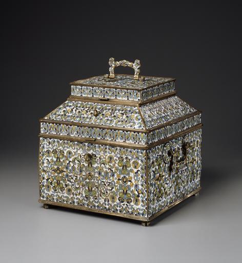 Keywords: Russian - Casket - Walters 44237 - Three Quarter.jpg The earliest Ustiug wares usually involved applying a single layer of enamel most often colored white blue green or yellow onto a cast copper alloy base This casket is in the form of a teremok the upper portion of a house that was set aside for women in Russian noble households during the 16th and 17th centuries Probably intended for jewelry the casket has a large compartment below and the lid itself contains a compartment; both were probably once fitted with special containers late Other date century 17 Early Modern copper alloy champlevé enamel cm 27 5 27 7 accession number 44 237 21654 Henry Walters Baltimore date and mode of acquisition unknown Walters Art Museum Henry Walters Acquired by Henry Walters Russian Enamels The Walters Art Gallery Baltimore 1996-1997 place of origin Velikii Ustiug Russia Walters Art Museum license Baroque art in the Walters Art Museum Decorative and applied arts of Russia Media contributed by the Walters Art Museum needs category review |
