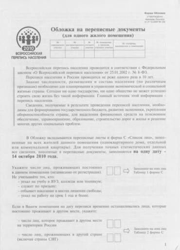 Keywords: Russian Census 2010 - Cover.tif ru Обложка на пе еписные документы для одного жилья Фо ма Обложка Goskomstat Goskomstat 2009-12-31 PD-RU-exempt Russian Census 2010