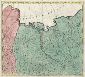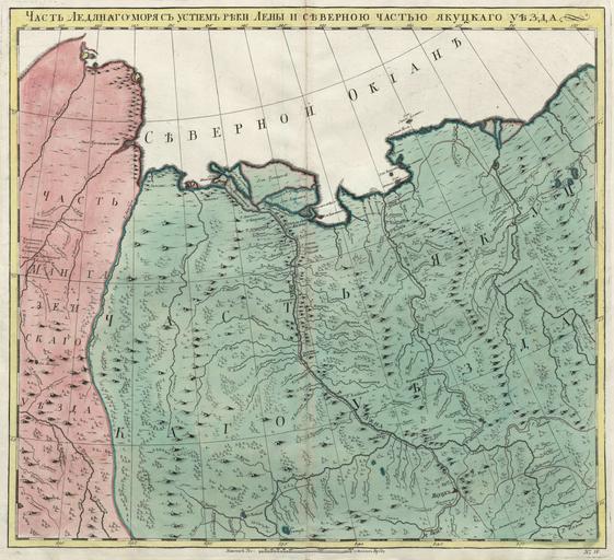 | Keywords: Russian Empire 1745 (Map XVI HQ).jpg LargeImage Russian Empire 1745 Map XV HQ jpg Russian Empire 1745 Map XVII HQ jpg ru Пе вый официальный атлас Российской импе ии 1745 Часть Севе ного Ледовитого океана с устьем еки Лены и севе ной частью Якутского уезда О игинальная ка та г ави ована на меди и аск ашена в учную аква елью en First official geographic atlas of the Russian Empire 1745 Part of Arctic Ocean with mouth of Lena river and nothern part of Yakutsk uyezd Hand-coloured copper engraving Атлас Российский 1745 циф овая копия сделана Российской госуда ственной библиотекой http //www rsl ru Geographic atlas of the Russian Empire 1745 digital copy made by Russian State Library http //www rsl ru/en РА Russian Academy of Science 1745 <gallery> File Russian Empire 1745 Map XVI in Latin jpg Ва иант ка ты на латыни Same map in Latin File Russian Empire 1745 Map XVI jpg Че но-белый ва иант на усском низкое качество Black white in Russian low quality </gallery> PD-old-100 Atlas of Russian Empire 1745 year in Russian hand-coloured Maps of Sakha |