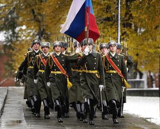Keywords: Russian honour guard perform wreath-laying ceremony Tomb Unknown Soldier Moscow Russia