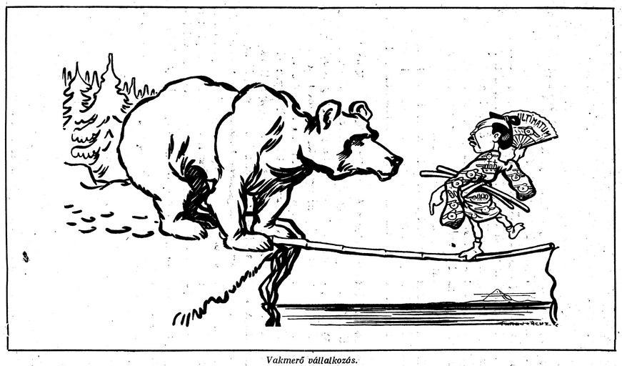 | Keywords: Russian-Japanese bear-bambus.jpg en English Bold undertaking This is the title of this ironically image appeared in the Parisian Figaro in occasion of the outbreak of the Russo-Japanese war The mock image is trying to say that small Japan was a bold undertaking sent an ultimatum to strong Russia and with war threatened It's one so a dangerous business as if it is a Japanese artist a weak bamboo would go over the sea and on the other side would a huge bear waiting him During the war however the clever little Japan thoroughly handled with the bear Magyar Vakmerő vállalkozás Ezzel a címmel jelent meg ez a gúnykép a párizsi Figaróban az orosz-japán kitörése alkalmával A gúnykép azt akarja mondani hogy a kis Japántól vakmerő vállalkozás volt az hogy ultimátumot küldött a hatalmas Oroszországnak s háborúval fenyegette meg Olyan veszedelmes vállalkozás ez mintha egy japán artista egy gyönge bambusznádon menne át a tengeren s a másik parton egy hatalmas medve várná A háborúban azonban az ügyes kis japán alaposan elbánt a medvével Tolnai világtörténelme VII rész A legújabb kor 20-Napjaink története Tolnai nyomdai műintézet és kiadóvállalat R -T kiadása Budapest round 1920 page 192 Ballagi Aladár and 14 co-authors 1904 PD-Old File Russian-Japan bear-bambus jpg This file has whole text History of Japan Russo-Japanese War in 1904 1904 in military history War in art cc-by-3 0 |