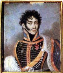 | Keywords: Russian officer 1808-09.JPG По т ет штабс-офице а / Из соб ания Бах ушина Изоб ажен в доломане и ментике Павлог адского гуса ского полка с о денами Гео гия 4-й степени Владими а 4-й степени с бантом и альтийским к естом own scan 1808-1809 anonimous PD-old-100 Portrait miniatures in the Moscow State Historical Museum Portraits of hussars from Russia Files uploaded by Shakko from various sources 2nd Pavlogradsky Hussar Regiment | ||||