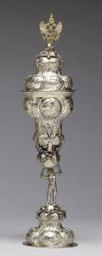 | Keywords: Russian - Standing Cup with Cover - Walters 57809.jpg This vessel has designs of conventionalized foliage executed in repoussé The lid is topped with a double-headed eagle while Atlas the ancient god who supported the heavens on his shoulders serves as the cup's stem 1760 Early Modern silver parcel gilt cm 40 5 accession number 57 809 26390 Alexandre Polovtsoff Aleksandr Aleksandrovich Polovtsov St Petersburg and Paris by purchase Henry Walters city Baltimore Walters Art Museum Henry Walters Acquired by Henry Walters 1930 Inscription Several marks on lip and leg of figure including the date 1760 Russian Art Icons and Decorative Arts from the Origin to the Twentieth Century The Walters Art Gallery Baltimore 1959-1960 place of origin Moscow Russia Walters Art Museum license Decorative and applied arts of Russia Media contributed by the Walters Art Museum needs category review Collections of the Walters Art Museum |