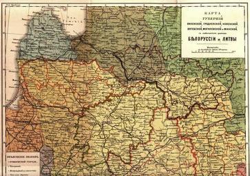 | Keywords: Russian-West-Gubernias-1897.jpg Ка та губе ний Виленской Г одненской Ковенской Витебской огилевской и инской с показанием г аниц Бело уссии и Литвы асштаб в одном английском дюйме 60 ве ст Russian West Gubernias in 1897 Photocopy of map of Western en Gubernias of Tsarist Empire fragment of the whole map 1897 unknown author of photo unknown PD-Art Old maps of Lithuania under Russian and German empires Old maps of the Russian Empire Old maps of Belarus Old maps of Poland | ||||