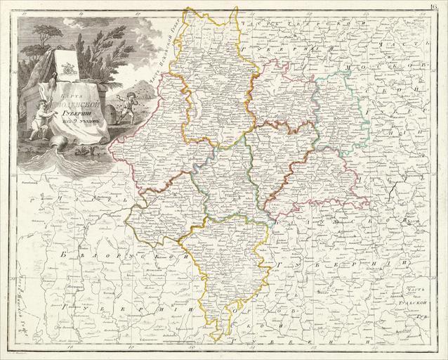 | Keywords: RussianEmpireMap1800-16-SmolenskayaProvince.jpg Атлас Российской импе ии 1800 год Лист 16 Смоленская губе ния из 9 уездов en Atlas of Russian Empire 1800 year List 16 Smolenskaya Province from 9 uyezds ста ая ка та en old map 1800 Александ ихайлович Вильб ехт en Aleksandr Mikhaylovich Vilbrekht Author died more than 70 years ago - public domain PD-old-100 Atlas of Russian Empire 1800 year Maps of Smolensk Governorate | ||||