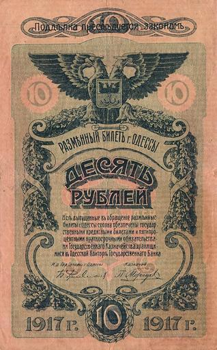 | Keywords: RussiaPS336-10Rubles-1917 f.jpg Одесские деньги - 10 ублей аве с http //aes iupui edu/rwise/countries/ 1917 Одесское казначейство 1917 год выпуска Одесса PD-RU-exempt banknotes PD-UA-exempt banknotes PD-old-70 original upload log page ru wikipedia RussiaPS336-10Rubles-1917_f jpg 2007-09-23 01 47 Vizu 472×760× 164733 bytes <nowiki> Описание Авто В емя создания Источник </nowiki> Banknotes of Odessa 1917 1919 Eagles on banknotes Banknotes with a face value of 10 Coat of arms of Russian state projects 1918-1919 |