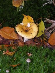 Keywords: russula mushrooms forest autumn colorful leaves collect yellow
