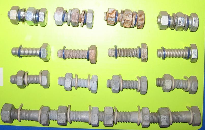 Keywords: Rust zp and hdg bolts.jpg en zp and hdg bolts rusted in NaCl and HCl solutions and in water ru элект о- 2 ве хних яда и го яче- 2 нижних яда оцинкованные болты сухие и после соде жания 5 суток в аство ах NaCl HCl и в воде Рыбин ВВ Рыбин ВВ 2005-05-05 public domain Hot-dip galvanizing |