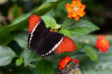Keywords: rusty tipped page butterfly insect wildlife banded brown antenna nature orange siproeta epaphus fauna rusty butterfly background flowers butterfly feeding