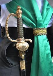 Keywords: Rutenhauptmann Säbel.jpg Säbel des Rutenhauptmanns mit dem Stadtwappen Trommlerkorps der Gymnasien Rutenfest Ravensburg own 2012-07-25 Photo Andreas Praefcke Trommlerkorps der Gymnasien Rutenfest Ravensburg Coats of arms of Ravensburg Photos by User AndreasPraefcke