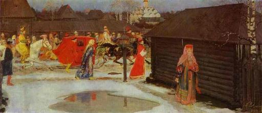 | Keywords: Ryabushkin wedding train.JPG Wedding Train in the XVII century Moscow 1901 Oil on canvas The Tretyakov Gallery Moscow Russia Uploaded from http //www abcgallery com/R/ryabushkin/ryabushkin html Creator Andrei Ryabushkin PD-old-100 Свадебный_поезд_в_ оскве jpg 1901 paintings from Russia Moscow in art wedding transport marriage in art Moscow in the era before Peter I History paintings of Andrei Ryabushkin Russian girls by Andrei Ryabushkin 20th-century history paintings in the Tretyakov Gallery Artworks missing infobox template |
