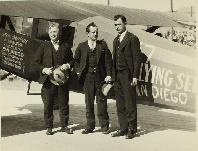 | Keywords: aviation aviator tubal claude ryan tubalclauderyan t. claude ryan tclauderyan claude ryan clauderyan t.c. ryan tcryan ryan harry clark harryclark clark people monochrome Photo Number: 04_03228 Description: Ryan and San Diego Mayor Harry Clark Grand Central Terminal Opening in Los Angeles Date: C.1928 Photo Number: 04_03228 Description: Ryan and San Diego Mayor Harry Clark Grand Central Terminal Opening in Los Angeles Date: C.1928 | ||||