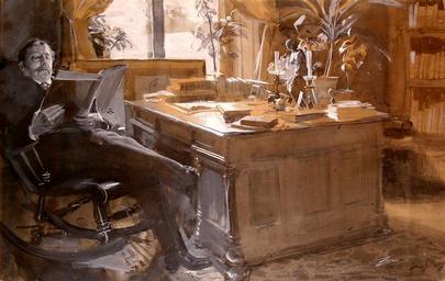 | Keywords: Rydberg Viktor 1.jpg Artwork langswitch Swedish author Viktor Rydberg reading a book in his rocking-chair Författaren Viktor Rydberg läser en bok i sin gungstol ca 1890 painting accession number object history credit line signature lower right http //bildbank gu se/gu/Standard/RecordView jsp ; photo by Mattias Jacobsson <gallery>Rydberg Viktor 1 cropped jpg cropped</gallery> Viktor Rydberg Paintings by Anders Zorn Paintings of sitting men reading indoors Paintings of sitting men Men facing right and looking right People sitting in rocking chairs 19th-century cabinet portraits Men reading in art PD-old-auto 1920 |