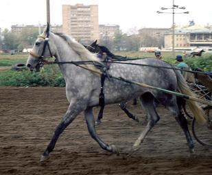 Keywords: Rysak na CMI.png en Orlov trotter in training at Moscow racecourse Own Лена 1999 1999 in Moscow Orlov Trotter Dappled grey horses Harness racing in Russia Moscow Hippodrome