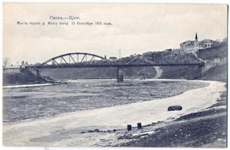 | Keywords: Rzhev Bridge.jpg 56 259938 34 335739 en An old photo of a bridge in Rzhev built in 1911 destroyed during the Second World War ru Фото ста ого жевского моста 1911 года пост ойки уничтожен во в емя войны 1911 http //rzev ru/modules/phpBB2/viewtopic php p 32125 A German PD-old Uploaded with UploadWizard Old Bridge Rzhev |