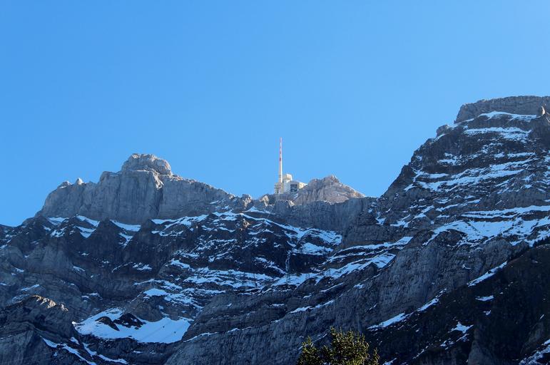 Keywords: säntis summit mountains swiss alps mountain station cell towers winter blast mountain panorama