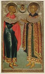 | Keywords: S. Ivan of Belgorod and tsarevich Ivan Mikhailovich (1639–1640s).jpg Икона Иоанн Белого одский и ца евич Иван ихайлович СВЯТОЙ ИОА БЕЛОГРАДСКИЙ И БЛАГОВЕР ЫЙ ЦАРЕВИЧ ИОА ИХАЙЛОВИЧ 1639 1640-е годы осква Де ево; темпе а; оклад се еб о; чеканка золочение 124 х 75 5 П оисходит из А хангельского собо а осковского К емля К инв Ж-536/1-2 http //www svyatayarus ru/data/icons/183_st_ioann/index php 1639 1640-е годы anonymous PD-Art-100 PD-Art-100 Icons of saints - J Ivan Mikhailovich Patron icons of Russian rulers Icons of saints with two persons Icons in the Museums of Moscow Kremlin Exhibition Sainte Russie Moscow 2011 - icons Files uploaded by Shakko from various sources Objects of Cathedral of the Archangel in Moscow |