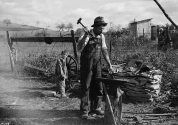 | Keywords: S. J. Barley, Rural Route 2, LaFollette, Tennessee - NARA - 532721.tif Scope and content S J Barley Rural Route 2 LaFollette Tennessee Part of his best land will be inundated by Norris Dam reservoir Barley is an ex-preacher a blacksmith and a carpenter as well as a farmer He has had 17 children only 11 now living and is an applicant for a job He invested his life savings in a coal mine and lost it all The neighbors say `He was born in a blacksmith shop with a hammer in his hand He made the `bull-tongue plow in the picture Of the boy helping him at the outdoor forge he said `He is my sixteenth baby and I have one smaller General notes 532721 Local identifier 142-H-103 Tennessee Valley Authority 1933 - NARA-Author Hine Lewis Wickes 1874-1940 Photographer 1122914 <br /> Tennessee United States North and Central America state 4192111 35 5 -85 <br /> Still Picture Records Section Special Media Archives Services Division NWCS-S National Archives at College Park 8601 Adelphi Road College Park MD 20740-6001 1933-11-08 Record group Record Group 142 Records of the Tennessee Valley Authority 1918 - 2000 Record group ARC 471 Lewis Hine Photographs for the Tennessee Valley Authority TVA compiled 1933 - 1933 Series ARC 532624 File unit File unit ARC Variant control numbers NAIL Control Number NWDNS-142-H-103 yes Other versions <gallery> File S _J _Barley _Rural_Route_ 2 _LaFollette _Tennessee_-_NARA_-_532721 tif tif original File S _J _Barley _Rural_Route_2 _LaFollette _Tennessee_-_NARA_-_532721 jpg jpg </gallery> NARA-cooperation PD-USGov Blacksmiths from the United States Men at work in Tennessee People of Tennessee People in 1933 Anvils Blacksmith's tools Forges in the United States Fences in Tennessee Ploughs in the United States LaFollette Tennessee 1933 in Tennessee NARA images of Tennessee Black and white photographs of Tennessee Black and white photographs of men NARA TIF images with categorized JPGs |