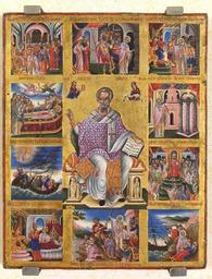 | Keywords: S. Nicholas by T.Poulakis (?), 17th c.jpg Ο Άγιος ικόλαος και σκηνές α ό τον βίο του δεύτερο μισό του 17ου αιώνα 24 5x30εκ Θεόδωρος Πουλάκης ; Στο κεντρικό τμήμα της εικόνας βρίσκεται ο άγιος ικόλαος καθισμένος σε μαρμάρινο θρόνο ου διακοσμείται με ανάγλυφους ολόσωμους ροφήτες σε μονοχρωμία Στο χρυσό βάθος ο Χριστός και η Παναγία του ροσφέρουν ευαγγέλιο και ωμοφόριο σύμφωνα με την αράδοση ου βασίζεται στον βίο του αγίου Γύρω του υ άρχουν δέκα εικονίδια με ε εισόδια α ό τη ζωή του και τα θαύματα του αγίου Mε φορά α ό άνω ρος τα δεξιά ο άγιος χειροτονείται ε ίσκο ος ρίχνεται στη φυλακή α ελευθερώνεται με διαταγή του Κωνσταντίνου καταστρέφει τα είδωλα συμμετέχει στη σύνοδο της ικαίας φέρνει τροφή στον έμ ορο στα ύρα διασώζει τους στρατηγούς α ό την εκτέλεση εμφανίζεται στο όνειρο του Κωνσταντίνου και του Αβλάβιου διασώζει τους ναύτες και στο τελευταίο αριστάνεται η Κοίμηση του αγίου http //eib xanthi ilsp gr/gr/icons asp cursort iconTitle selectFieldValue vpage 3 second half of the 17th century Theodoros Poulakis Emmanuel Lambardos Files uploaded by Shakko from various sources Theodoros Poulakis PD-old Icons of Saint Nicholas from Greece S. Nicholas by T.Poulakis (?), 17th c.jpg Ο Άγιος ικόλαος και σκηνές α ό τον βίο του δεύτερο μισό του 17ου αιώνα 24 5x30εκ Θεόδωρος Πουλάκης ; Στο κεντρικό τμήμα της εικόνας βρίσκεται ο άγιος ικόλαος καθισμένος σε μαρμάρινο θρόνο ου διακοσμείται με ανάγλυφους ολόσωμους ροφήτες σε μονοχρωμία Στο χρυσό βάθος ο Χριστός και η Παναγία του ροσφέρουν ευαγγέλιο και ωμοφόριο σύμφωνα με την αράδοση ου βασίζεται στον βίο του αγίου Γύρω του υ άρχουν δέκα εικονίδια με ε εισόδια α ό τη ζωή του και τα θαύματα του αγίου Mε φορά α ό άνω ρος τα δεξιά ο άγιος χειροτονείται ε ίσκο ος ρίχνεται στη φυλακή α ελευθερώνεται με διαταγή του Κωνσταντίνου καταστρέφει τα είδωλα συμμετέχει στη σύνοδο της ικαίας φέρνει τροφή στον έμ ορο στα ύρα διασώζει τους στρατηγούς α ό την εκτέλεση εμφανίζεται στο όνειρο του Κωνσταντίνου και του Αβλάβιου διασώζει τους ναύτες και στο τελευταίο αριστάνεται η Κοίμηση του αγίου http //eib xanthi ilsp gr/gr/icons asp cursort iconTitle selectFieldValue vpage 3 second half of the 17th century Theodoros Poulakis PD-old Emmanuel Lambardos Files uploaded by Shakko from various sources Theodoros Poulakis Icons of Saint Nicholas from Greece |