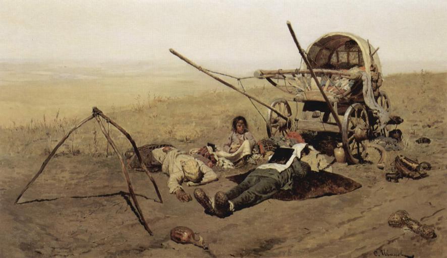 | Keywords: S. V. Ivanov. On the road. Death or a migrant. (1889).jpg Auf dem Weg Tod eines Umsiedlers On the road Death or a migrant В пути Сме ть пе еселенца Creator Sergei Vasilyevich Ivanov Oil Canvas cm 71 122 Institution Tretyakov Gallery The Yorck Project 10 000 Meisterwerke der Malerei DVD-ROM 2002 ISBN 3936122202 Distributed by DIRECTMEDIA Publishing GmbH 1889 PD-Art PD-old-100-1923 1910 RU PD-Art-YorckProject http //mail wikipedia org/pipermail/wikide-l/2005-April/012195 html Other versions <gallery>File S V Ivanov On the road Death or a migrant 1889 v2 jpg</gallery> Realist paintings 1889 paintings from Russia Genre paintings by Sergey Vasilyevich Ivanov 1889 Paintings_of_Russian_peasants 1889 19th-century genre paintings in the Tretyakov Gallery Death in art |