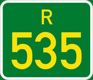 Keywords: SA road R535.svg en South Africa R535 road sign own Htonl 2014-09-13 535 number Diagrams of regional road number signs of South Africa