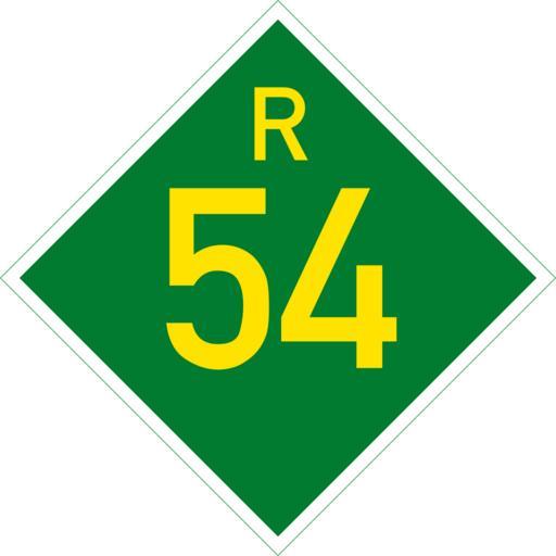 Keywords: SA road R54.svg en South Africa R54 road sign own Htonl 2014-08-31 Diagrams of provincial road number signs of South Africa 54 number