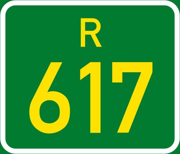 Keywords: SA road R617.svg en South Africa R617 road sign own Htonl 2014-09-13 617 number Diagrams of regional road number signs of South Africa