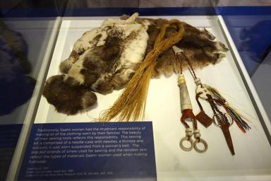 | Keywords: Saami sewing kit, sinews, and reindeer skin, kit 1997, materials 1981 - Bata Shoe Museum - DSC00422.JPG en Exhibit in the Bata Shoe Museum Toronto Ontario Canada The museum permitted photography without restriction 2013-07-04 11 07 10 own Daderot cc-zero Uploaded with UploadWizard Miscellany in the Bata Shoe Museum Duodji | ||||