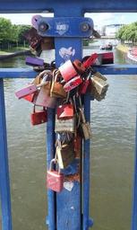 Keywords: saarbrücken love lock city bridge padlock obligation