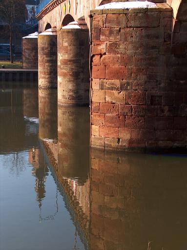 Keywords: saarbrueken germany bridge stone architecture old historical water river reflections close-up outside
