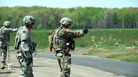Keywords: m9 pistol command sergeant major commandsergeantmajor csm 34th infantry division 34thinfantrydivision saber strike saberstrike strong europe strongeurope estonia u.s. army usarmy army outdoor motorcycle bike vehicle 34th Infantry Division Command Sgt. Maj. John Lepowsky coaches a firer on the M9 pistol qualification range at Camp Ripley, Minn., May 6, 2016. Red Bulls of the 34th Infantry Division headquarters are preparing for exercise Saber Strike 16 in Estonia. Saber Strike, a long-standing U.S Army Europe-led cooperative training exercise. This year’s exercise, which will take place from May 26 to June 21, will facilitate cooperation amongst the U.S., Estonia, Latvia, and Lithuania to improve joint operational capability in a range of missions as well as preparing the 13 participating nations to support multinational contingency operations. (Minnesota National Guard photo by Sgt. Sirrina Martinez/Released) 34th Infantry Division Command Sgt. Maj. John Lepowsky coaches a firer on the M9 pistol qualification range at Camp Ripley, Minn., May 6, 2016. Red Bulls of the 34th Infantry Division headquarters are preparing for exercise Saber Strike 16 in Estonia. Saber Strike, a long-standing U.S Army Europe-led cooperative training exercise. This year’s exercise, which will take place from May 26 to June 21, will facilitate cooperation amongst the U.S., Estonia, Latvia, and Lithuania to improve joint operational capability in a range of missions as well as preparing the 13 participating nations to support multinational contingency operations. (Minnesota National Guard photo by Sgt. Sirrina Martinez/Released)