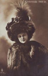 | Keywords: Sable Fashion1909.jpg Wintermode 1909/10 Zobelcape Pellerine Zobelhut mit Samt und Federn Postkarte 8 5 x 13 5 cm Fabrikantenzeichen PFB Ser 86/5 Adressiert als Soldatenkarte Herrn Sanitäts-Feldwebel Hermann Szröde Reserve-Lazarett Bad Kreuznach Sf Marienwörth; 20 März 1915 Stempel Pirmasens 2 20 8-9 Nm aus der Sammlung Kuhn unknown /from own possession 1909 --Kürschner <span class signature-talk >talk</span> 08 10 12 May 2010 UTC PD-old Sable clothing Sable caps Capes Women with fur hats Fur fashion in 1909 Furrier's collection Kuhn |